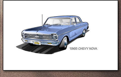 1965 Chevy Nova PRINT is LEGAL size (14" X 8.5") printed on high quality acid free white paper and signed by the artist.