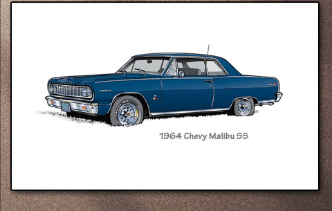 1964 Chevy Malibu PRINT is LEGAL size (14" X 8.5") printed on high quality acid free white paper and signed by the artist.
