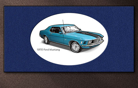 1970 Ford Mustang MATTED PRINT is 20" X 10" and will fit a standard 20 X 10 frame available at Michael's, Hobby Lobby and all custom frame shops.