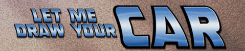 CAR PORTRAIT will slow our progress somewhat on the web site... what the heck! We're here to DRAW! Tell us the model you want from the Inventory page |